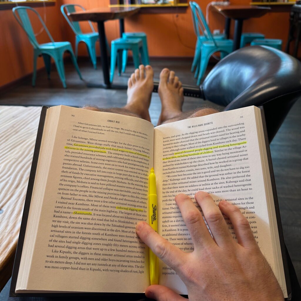 After making a cappuccino, I dove into Cobalt Red, the book I’ve been working through. I’m now halfway through, and the material is heavy but important. It delves deep into the human cost of exploitation in Africa due to cobalt mining. The tragedy in those pages is overwhelming, and as I read, I felt a distinct tension forming in my body. It’s hard to absorb such heartbreaking truths while sitting in the comfort of my own home, knowing that the world outside my window—the birds at the feeder, the gentle sway of trees—is so peaceful compared to the horrors others are facing.